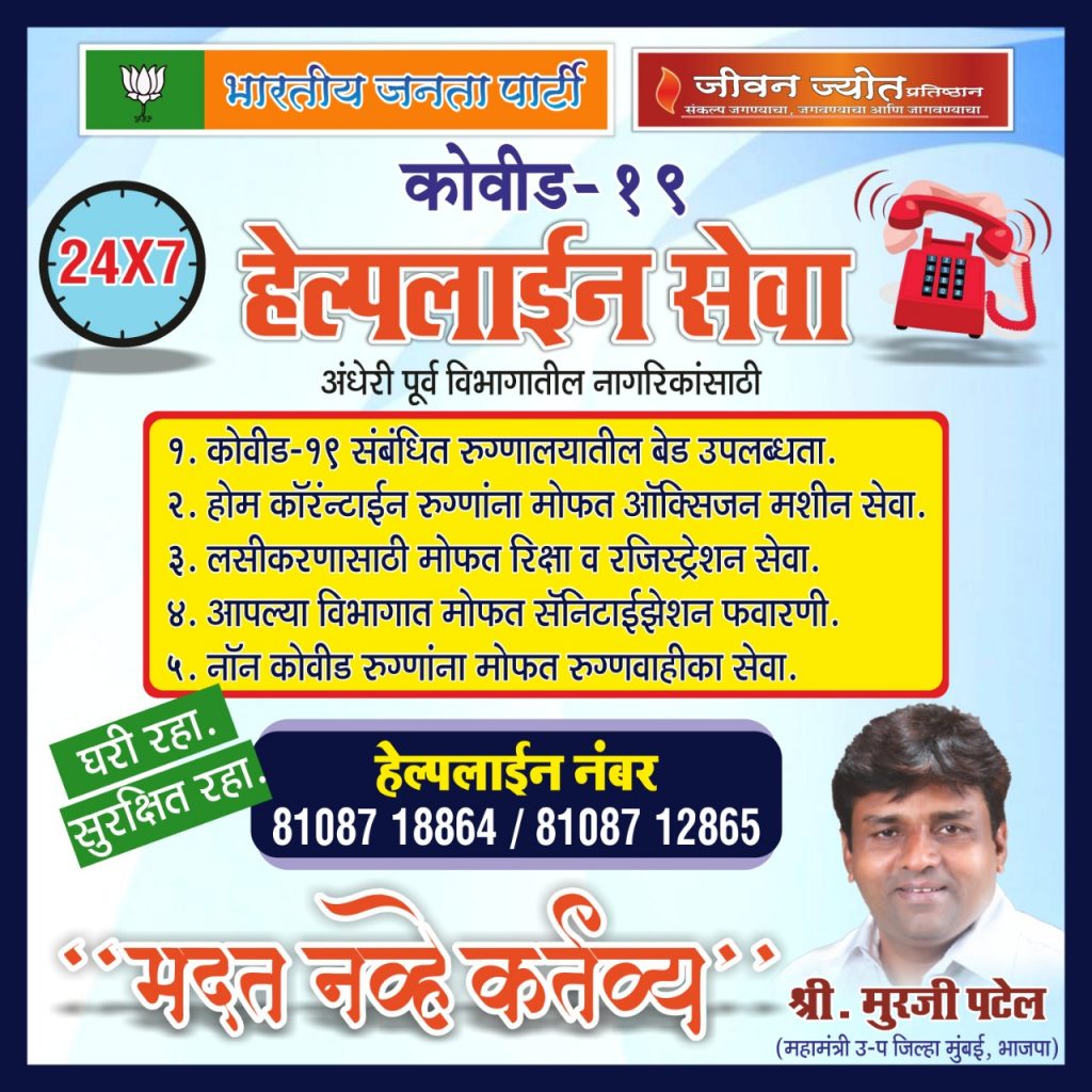 गौरतलब है कि पिछले १ वर्षों से मुरजी पटेल ने कोरोना महामारी के दौरान लाखो मास्क वितरण, भोजन की व्यवस्था, अनाज वितरण, आर्सेनिक अल्बम का वितरण जैसे कई जनसेवा के कार्य कर रहें हैं. क्षेत्र की आम जनता का कहना है कि हमेशा से ही आपात काल के समय में मुरजी काका हमारे साथ खड़े रहते हैं
